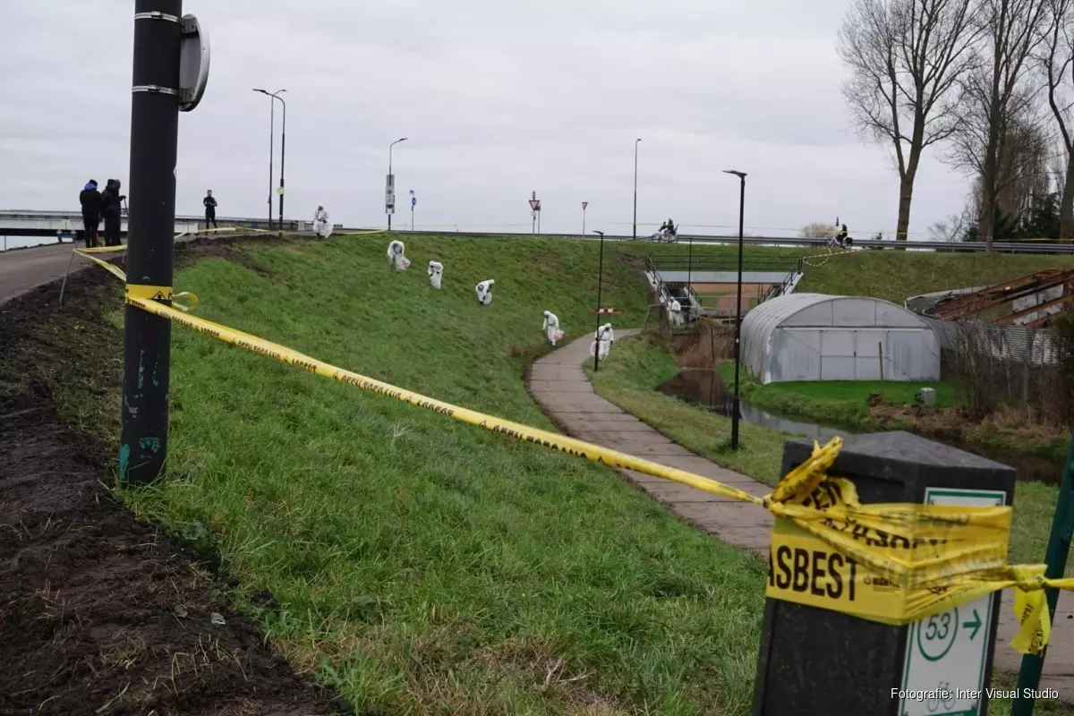 HEERHUGOWAARD - Nabij de plek waar afgelopen vrijdag een grote uitslaande brand uitbrak waren zondagmiddag ineens personen in witte pakken te zien. Zij hielden zich bezig met het ruimen van asbest die is vrijgekomen na de brand bij leliekweker Wagenaar Chile in Heerhugowaard. Bij de brand werden twee grote loodsen van het bedrijf verwoest.
