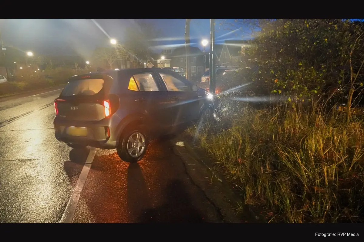 Een bestuurder raakte in de bocht de macht over het stuur kwijt en knalde op een lantaarnpaal, vermoedelijk door de gladheid op de weg.
