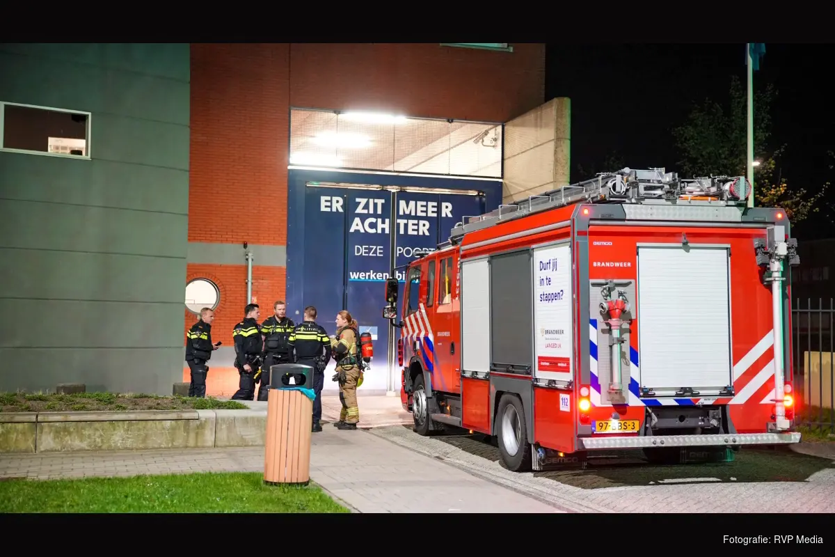 Twee brandweerwagens gingen ter plaatse via de sluis naar binnen terwijl enkele agenten buiten de wacht stonden te houden.
