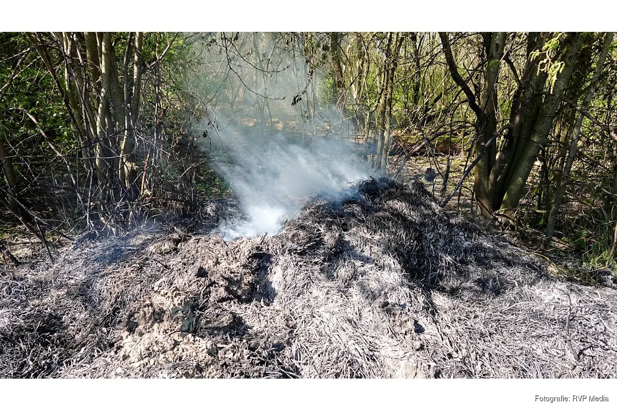 Een stapel riet stond volledig in brand en het vuur sloeg deels over naar een naastgelegen stapel. Daarbij kwam rook vrij die zich door het park verspreidde.
