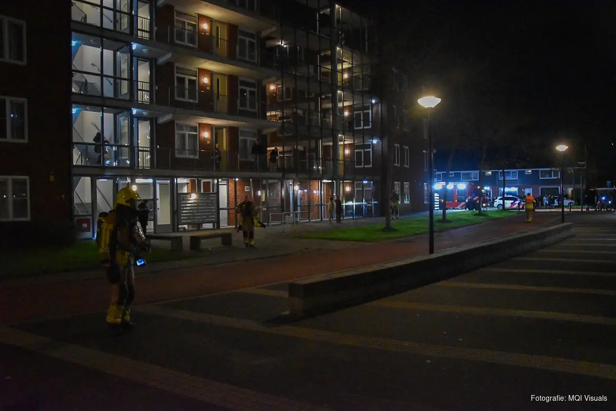In het complex hing een brandlucht en was lichte rookontwikkeling zichtbaar. Na een zoektocht door de brandweerlieden troffen zij in een appartement de boosdoener, de brandweer heeft niet hoeven blussen.