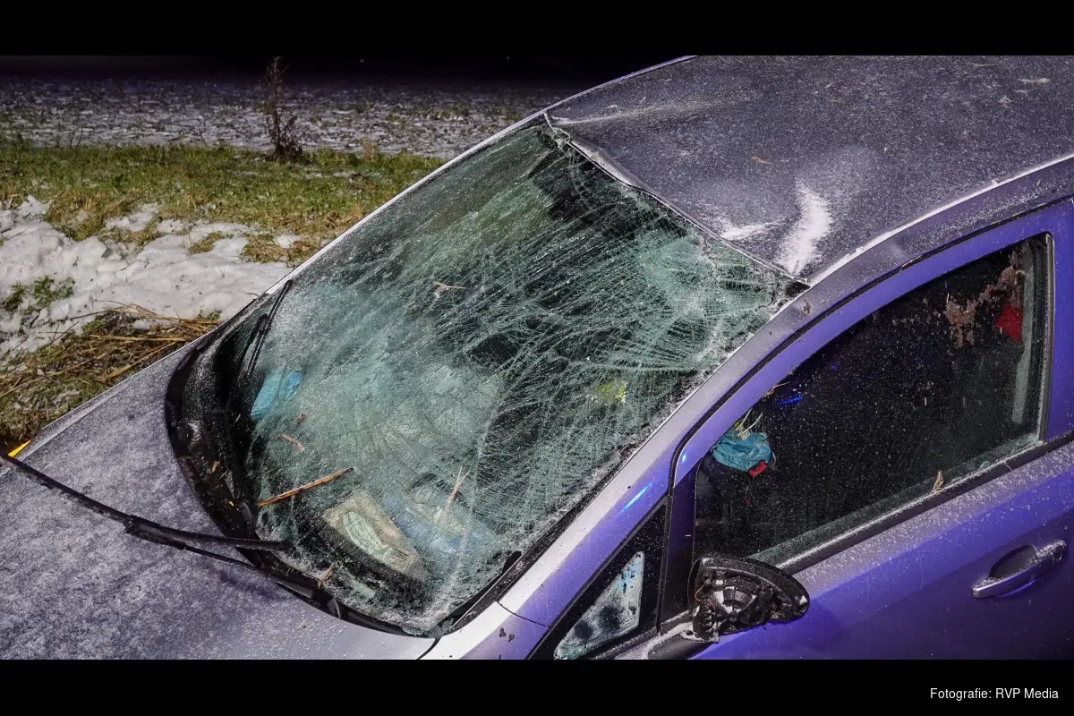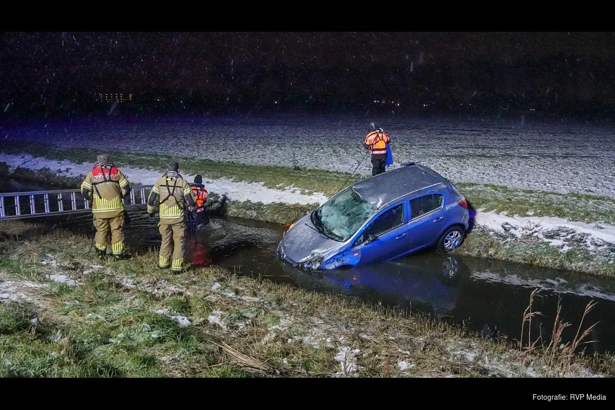 De zwaarbeschadigde auto is door een bergingsbedrijf uit het water getakeld en afgesleept.
