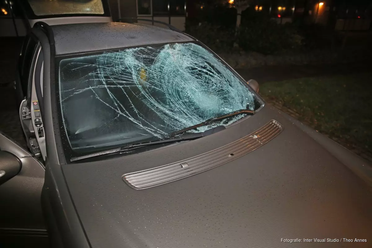 Het ongeval gebeurde in een bocht van de weg. De fietser belandde na de aanrijding op de voorkant van de auto. Dit veroorzaakte een grote barst in de voorruit.