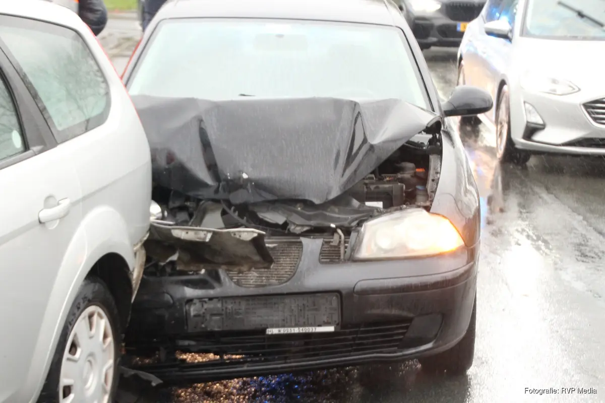 Een automobilist nam blijkbaar niet genoeg afstand en botste na een remactie achterop een andere personenauto.Daarbij hielp het natte wegdek ook niet mee. De achterste auto raakte dusdanig beschadigd dat deze als total loss kan worden beschouwd. Ook de voorste auto liep de nodige schade op.