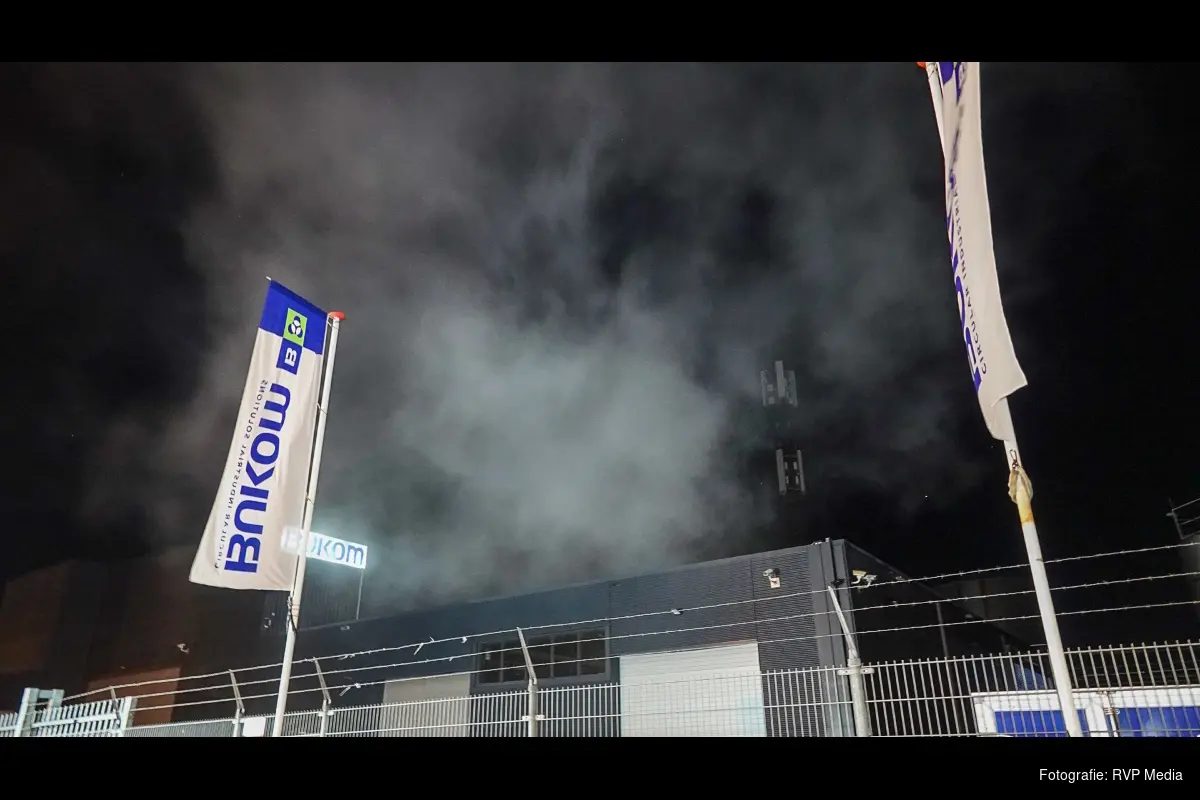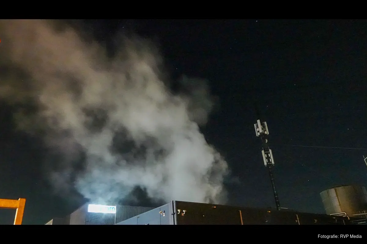 Een voorbijganger zag vanaf het dak van Bukom Services B.V. zich een grote rookwolk vormen. De wolk trok deels omhoog en over de naastgelegen Newtonstraat.