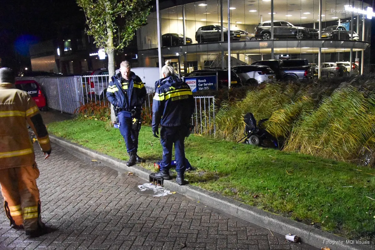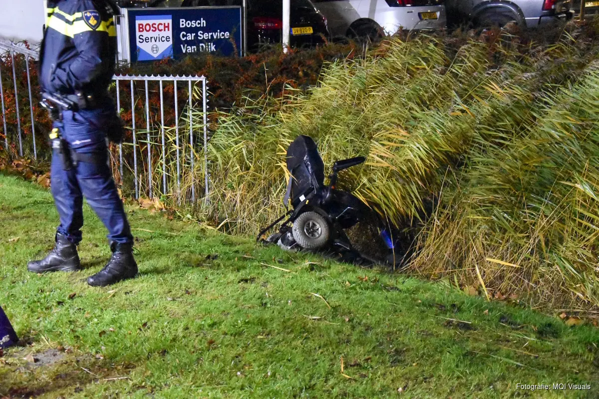 Na een zoekslag in en rond het water door brandweer en politie is er geen slachtoffer aangetroffen.Vermoedelijk is de scootmobiel door baldadigheid in het riet terecht gekomen.
