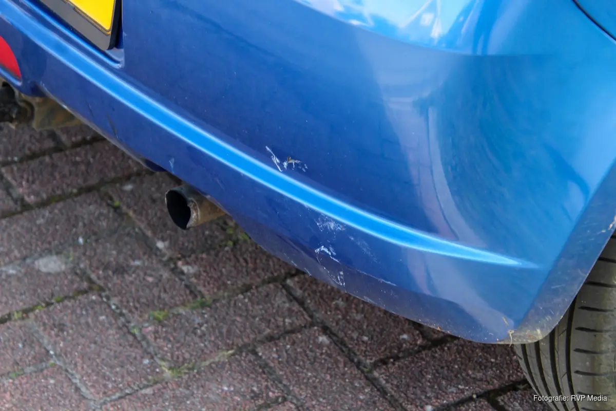 De schade bij het ongeval bleef beperkt. De auto liep slechts een lichte kras op en kon zijn weg vervolgen. De scooter is op de stoep geplaatst.