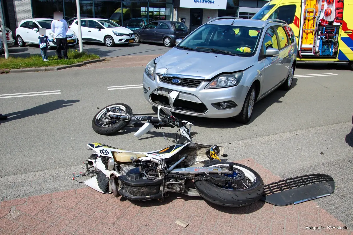 Door de klap brak de motor in tweeën en raakte de bestuurder ernstig gewond, de motorrijder vloog door de klap over de auto heen. Het slachtoffer is door de ambulance met spoed overgebracht naar het ziekenhuis.