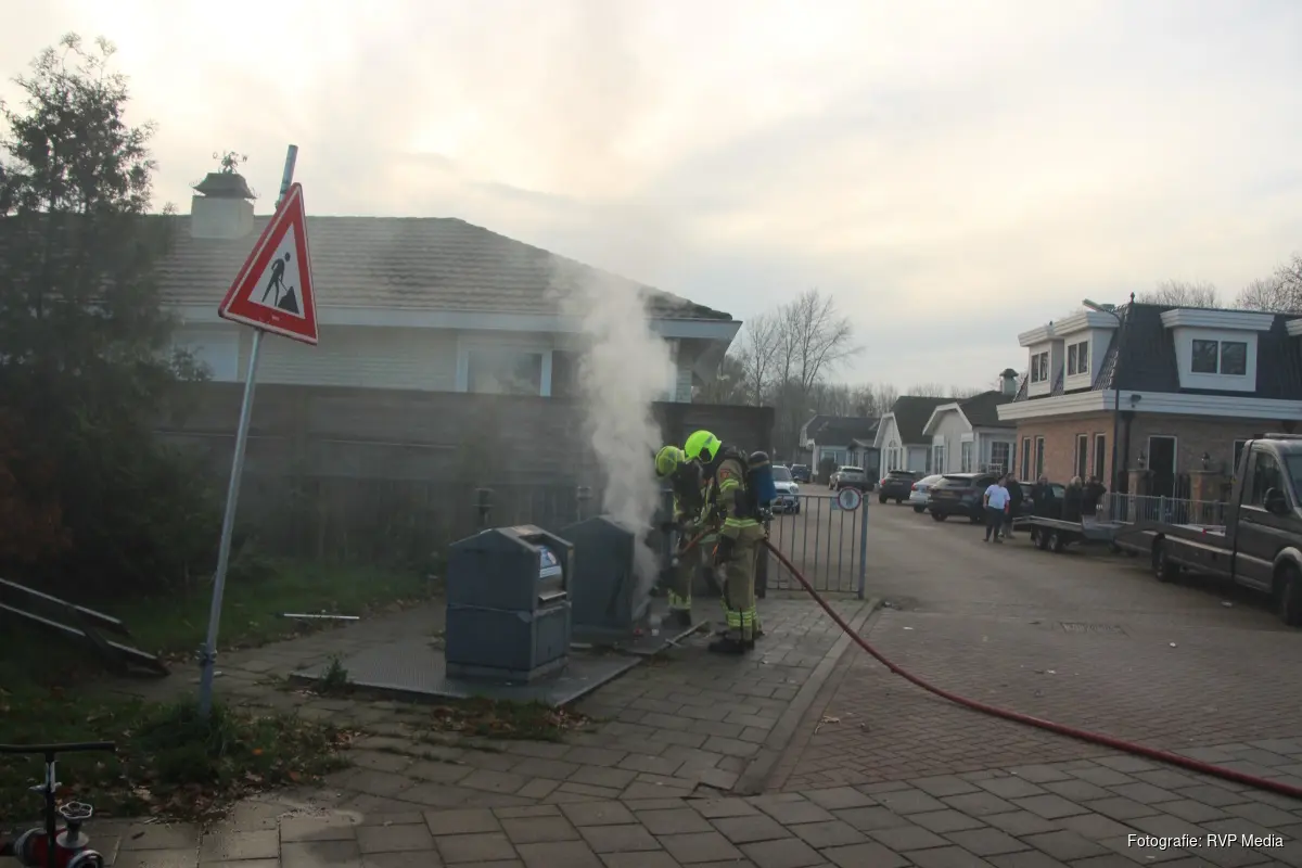 De brandweer heeft om de brand te blussen een slang aangesloten op de ondergrondse brandkraan en vervolgens de container vol laten lopen met water.