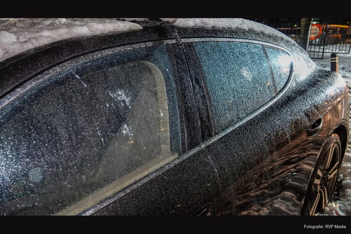 In elk raam aan de linkerzijde van de auto zit een krater, vermoedelijk is getracht een brandend object in de auto te krijgen. Ook op het dak van de auto ligt een verbrand object, mogelijk plastic.