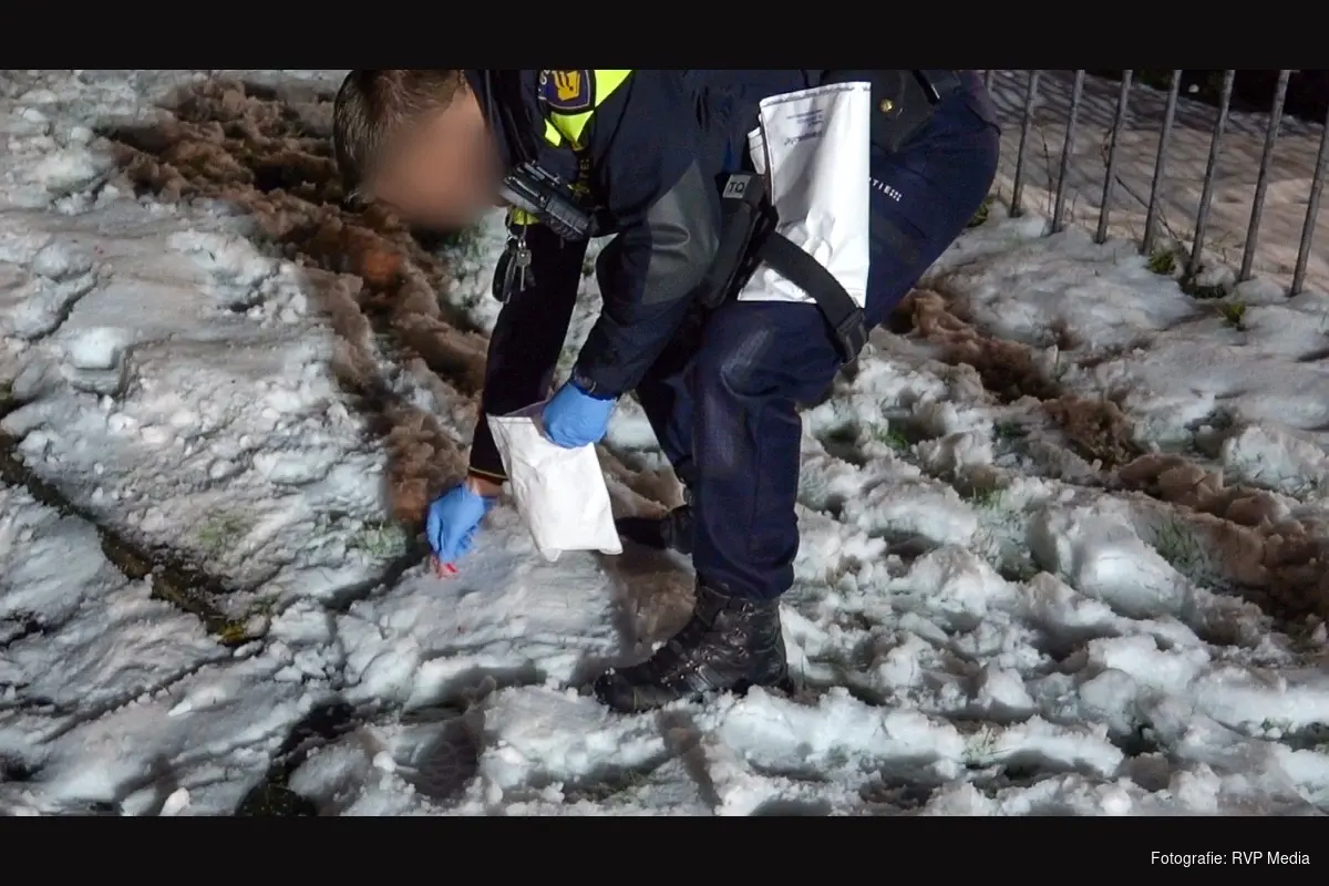 De politie heeft bewijsmateriaal verzameld rond de wagen en in een plastic zak gestoken. Forensiche onderzoekers zullen bij daglicht verder onderzoek doen.