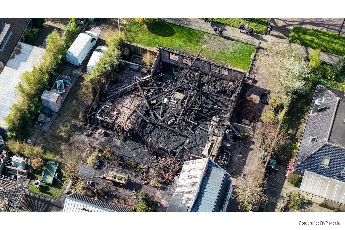 UPDATE 13.00 uur: Nieuwe beelden met een drone gemaakt bij goed daglicht. Het perceel is door hulpdiensten afgezet met lint 'gevarenzone niet betreden'.