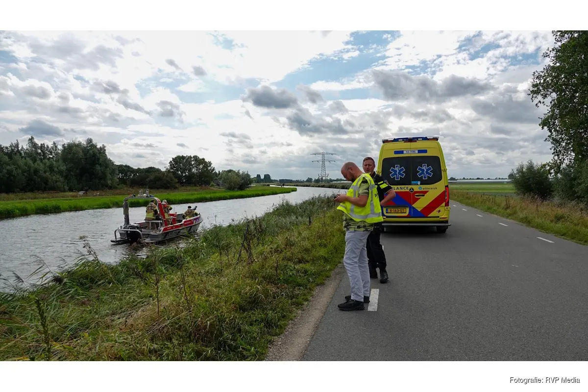 Langs de kant ligt een fiets met daarop kleding van een persoon. Er wordt rekening gehouden met het feit dat er iemand in het water zou liggen. De hulpdiensten zijn groots ter plaatse.