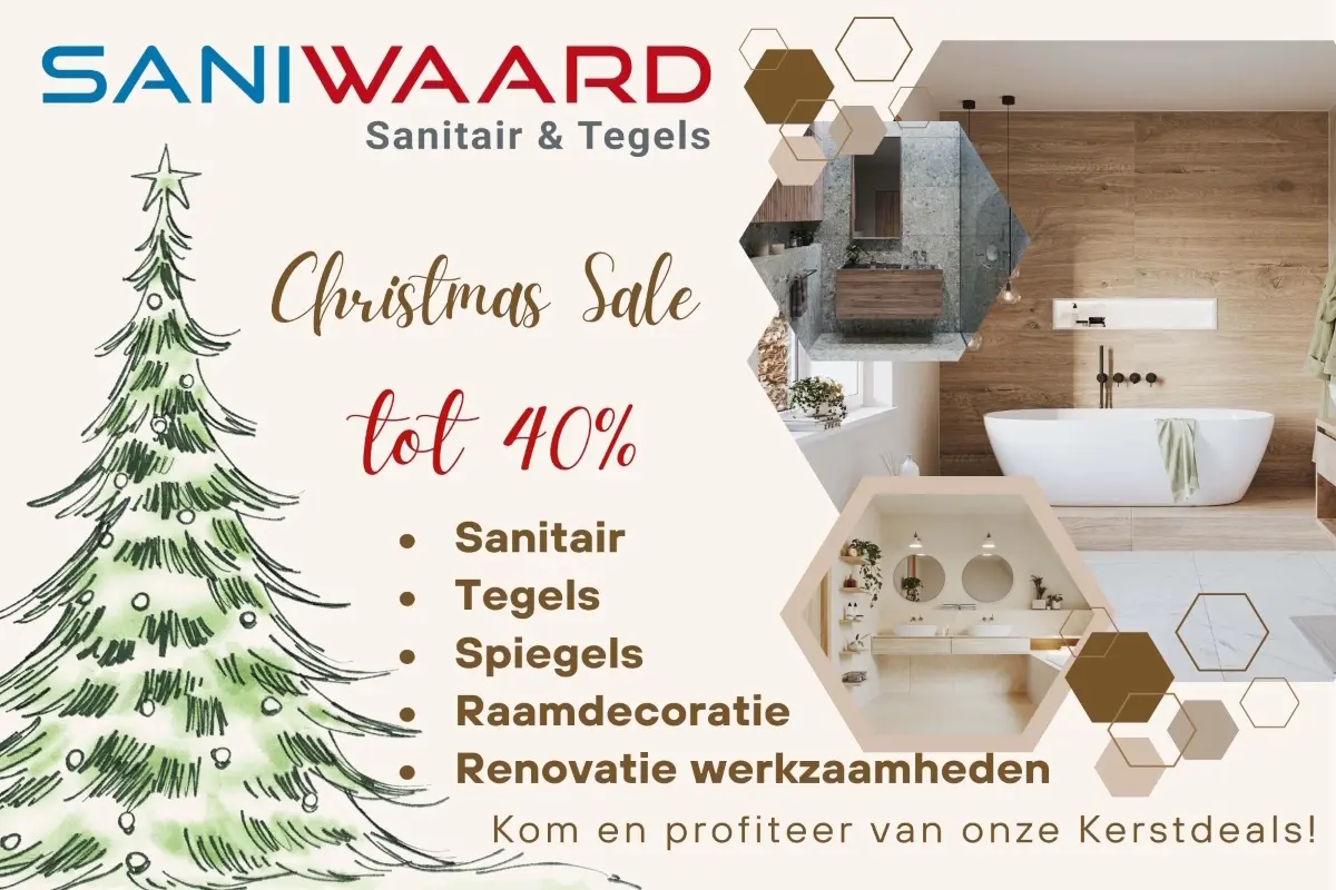 Stap binnen bij Saniwaard en ontdek een wereld van comfort en stijl. Van eigentijdse badkamermeubels tot designkranen, onze showroom biedt de nieuwste trends en tijdloze klassiekers. Wij bieden niet alleen hoogwaardige producten, maar ook professioneel interieuradvies, snelle levering en totale badkamerrenovatie. Kom langs en profiteer van onze kerstdeals!