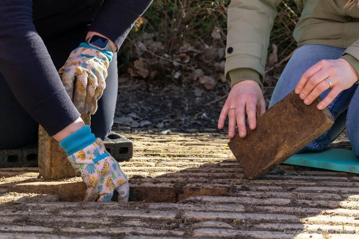 DIJK EN WAARD - Het NK Tegelwippen is weer van start gegaan in Dijk en Waard. Tegels eruit, groen erin. Voor het vijfde jaar op rij doet de gemeente mee. En het resultaat mag er zijn: in die vijf jaar is totaal ruim 95.000 m2 aan tegels gewipt. In tuinen én in de openbare ruimte. Wethouder Biodiversiteit Ester Leibbrand: "Dit jaar hopen we samen met Dijk en Waarders opnieuw tegels te vervangen door gras, bloemen, struiken en bomen."