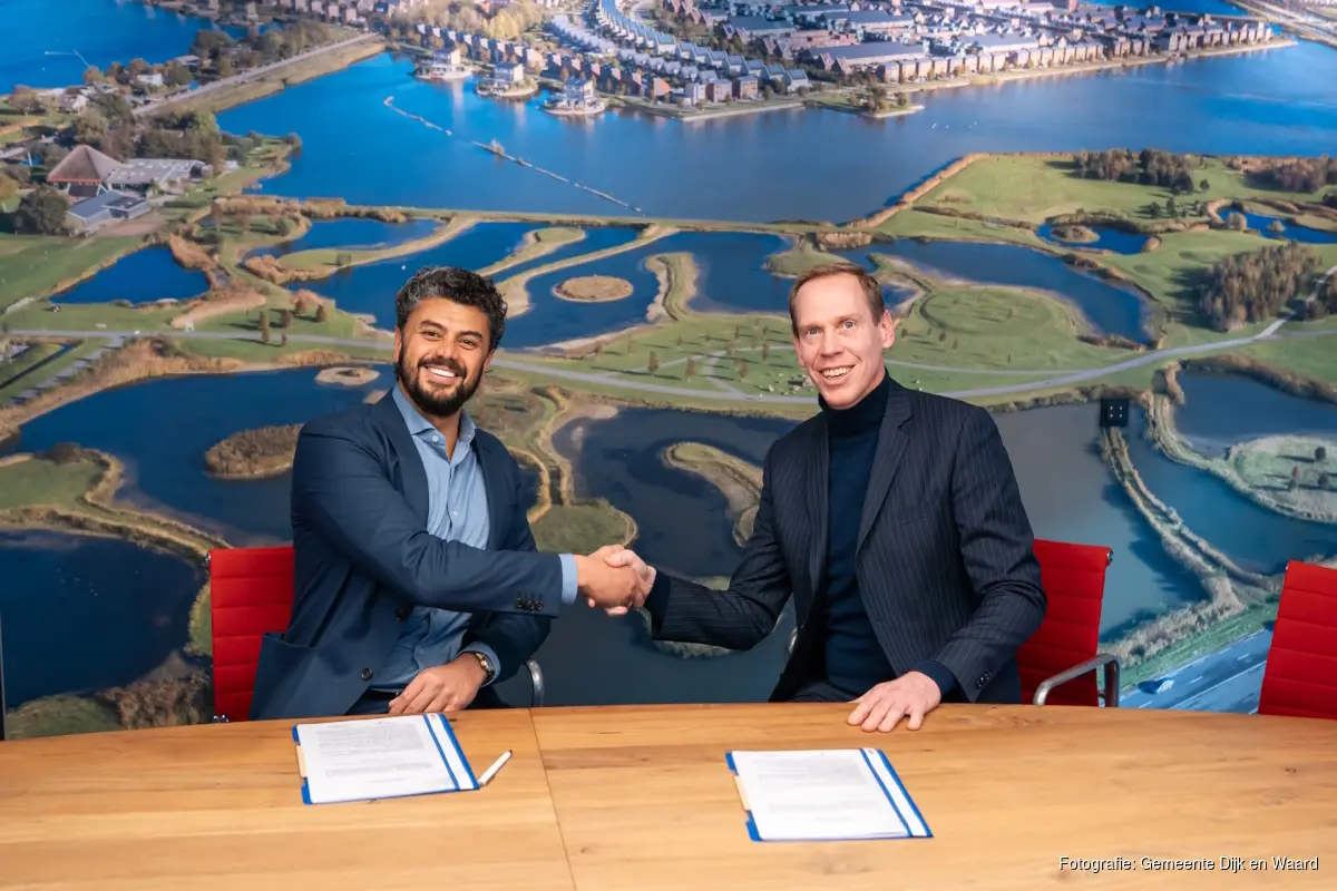 DIJK EN WAARD - Gemeente Dijk en Waard zet de volgende stap in de ontwikkeling van het Openbaar Vervoersknooppunt. Bij het station wil de gemeente een nieuwe parkeergarage realiseren voor treinreizigers en voor bezoekers van het Stationskwartier. Daarom tekenden de gemeente en eigenaar van het perceel, de heer Partovi, op dinsdag 20 januari een intentieovereenkomst. Zij gaan aan de slag met de vraag of, en hoe, zij betere en meer parkeerplaatsen kunnen realiseren, in combinatie met woningen op de plek van de voormalige De Snackerij, aan de Nijverheidsstraat.
