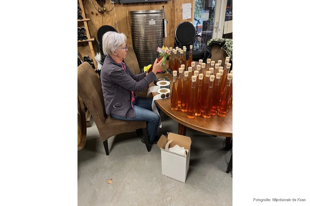 Bij Wijndomein de Koen wordt de likeur met de naam “Warmte” nu voorzien van een etiket en staat nu in de winkel.