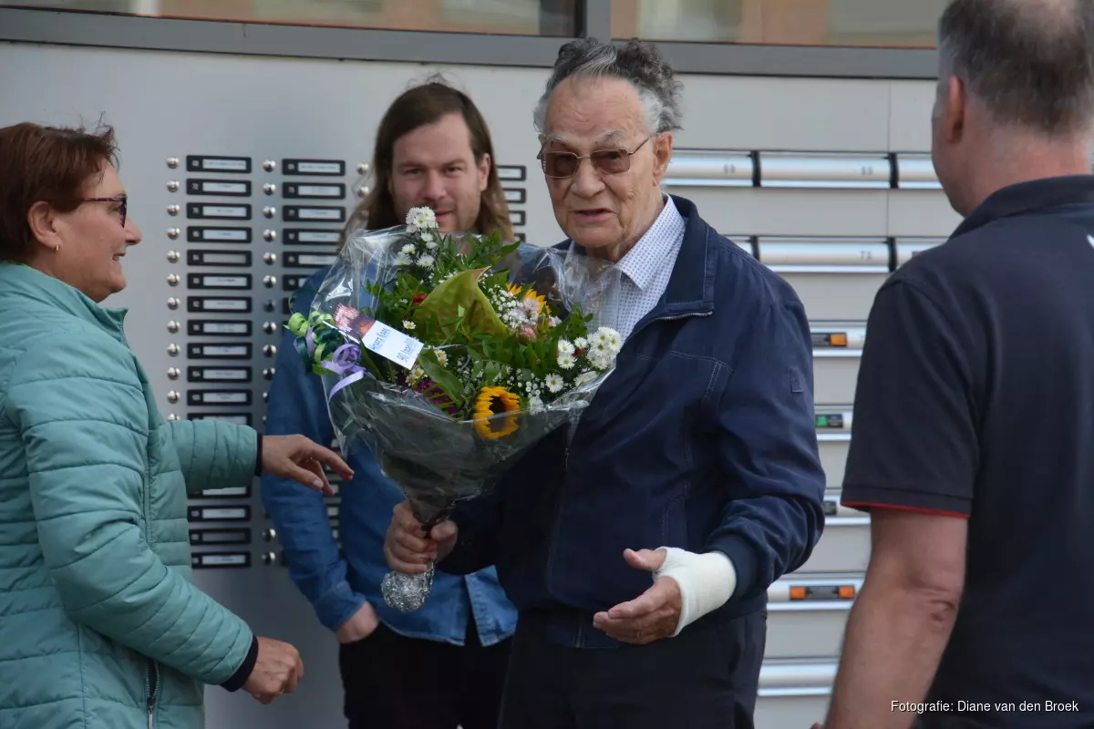Na het in ontvangst nemen van de bloemen en de felicitaties dankt de jarige zijn familie en het orkest dan ook hartelijk. 'Ik vind het geweldig dat jullie dit voor mij gedaan hebben en kan niet wachten om zelf weer deel uit te maken van het ensemble.' Die het dankwoord vervolgens beantwoorden met een extra toegift alvorens men afscheid van elkaar neemt.