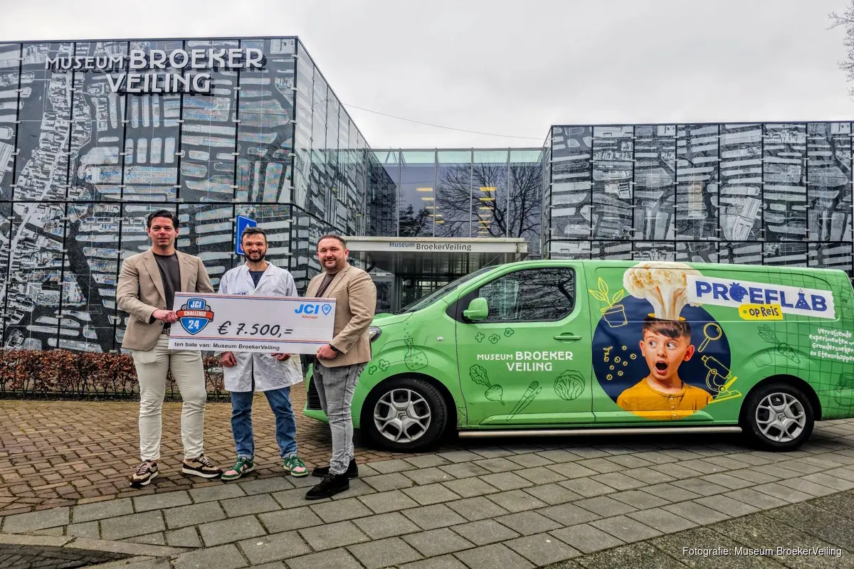 Museum BroekerVeiling is enorm dankbaar voor deze gulle bijdrage. Vanmorgen overhandigde bestuursleden William Stam en Lars Schuurmans een cheque ter waarde van € 7.500 aan Martijn Mollema, educator van het museum. De donatie zal worden ingezet voor het PROEFLAB-project, een initiatief dat kinderen en volwassenen op een interactieve manier kennis laat maken met voedselproductie, duurzaamheid en de rijke agrarische historie van het gebied en sinds kort besteed het PROEFLAB ook aandacht aan waterverbruik en watervervuiling. Dankzij de steun van JCI Alkmaar kunnen we dit educatieve project verder ontwikkelen en nog meer bezoekers inspireren.