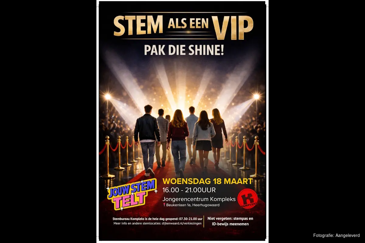 Woensdag 18 maart zijn de gemeenteraadsverkiezingen. Een belangrijk moment voor onze gemeente, waarbij iedere stem telt. Sinds een aantal jaar is jongerencentrum Kompleks in Heerhugowaard een stemlocatie, ook om het stemmen voor de jeugd laagdrempeliger en lekker ontspannen te maken. Ook dit jaar komt de burgemeester stemmen met een of meer Dijk en Waarders die op de dag zelf of vlak daarvoor 18 is of zijn geworden.