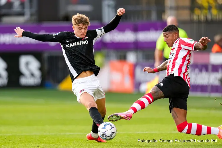 Na rust was het spel een ook langdurig niet om aan te gluren, maar vanuit het niets zette aanvoerder Mijnans de Alkmaarders uit een afgeslagen voorzet op voorsprong. Sparta rook via Mito, Clement, Baas en Negli nog aan de gelijkmaker, maar AZ bleef met hangen en wurgen overeind.