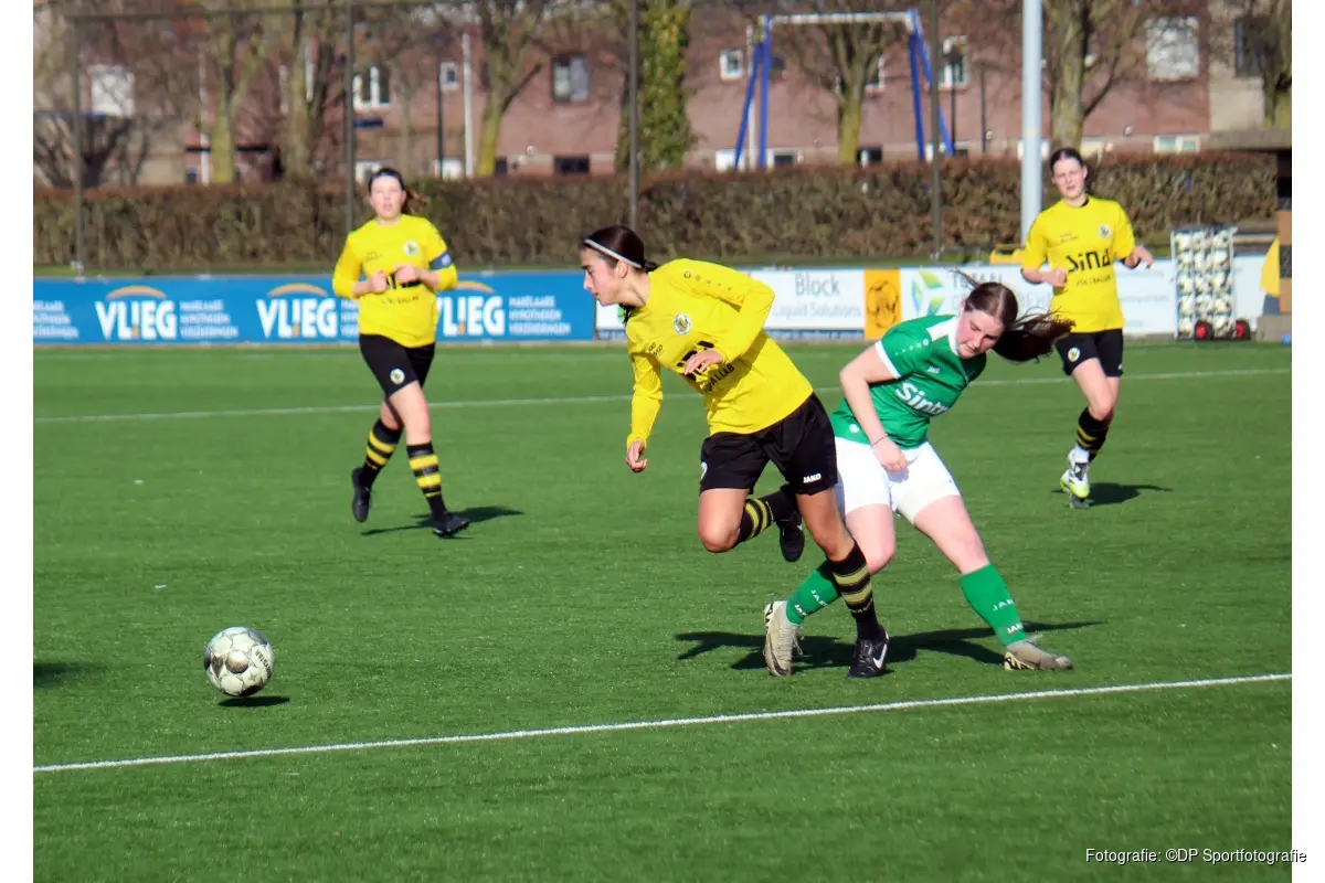 In het vervolg bleek het ook achterin goed dicht te zitten en hoefde keepster Jacky Reus nauwelijks echt in actie te komen. In de slotfase wist Mila Stevens, met het oog op het mogelijk belangrijke doelsaldo aan het eind van de rit, de zege nog wat extra cachét te geven: 4-0