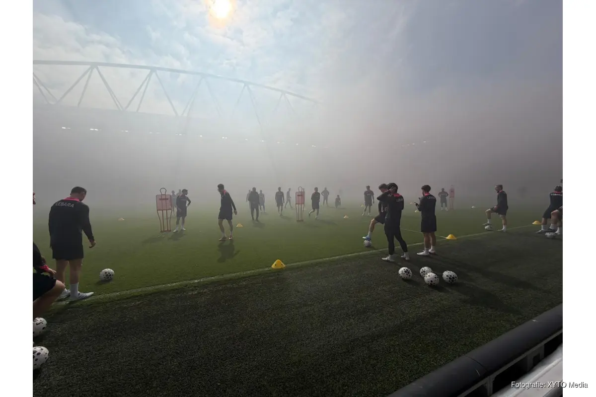 Het zorgde voor een prachtige sfeer in het stadion en vele supporters steunden de ploeg tijdens de laatste training voor men morgen naar Rotterdam vertrekt.
