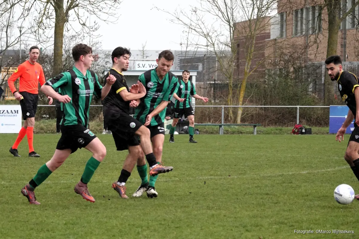 HEERHUGOWAARD - In de vierde klasse van het zaterdagvoetbal heeft het middenmootduel tussen Vrone en De Wherevogels geen winnaar opgeleverd. Op het voormalige complex van WMC in Heerhugowaard eindigde het zaterdag in 1-1.