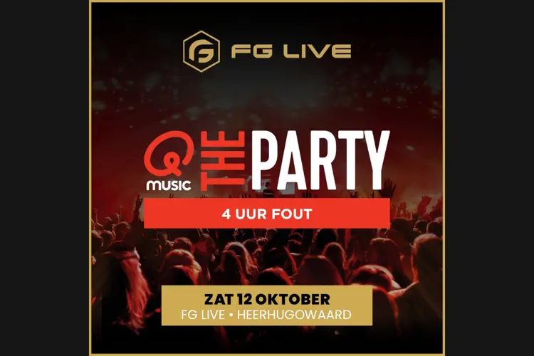 Tickets: € 15 plus € 2,50 servicekosten via https://www.fg-live.nl/programma/qmusic-the-party-4-uur-fout/