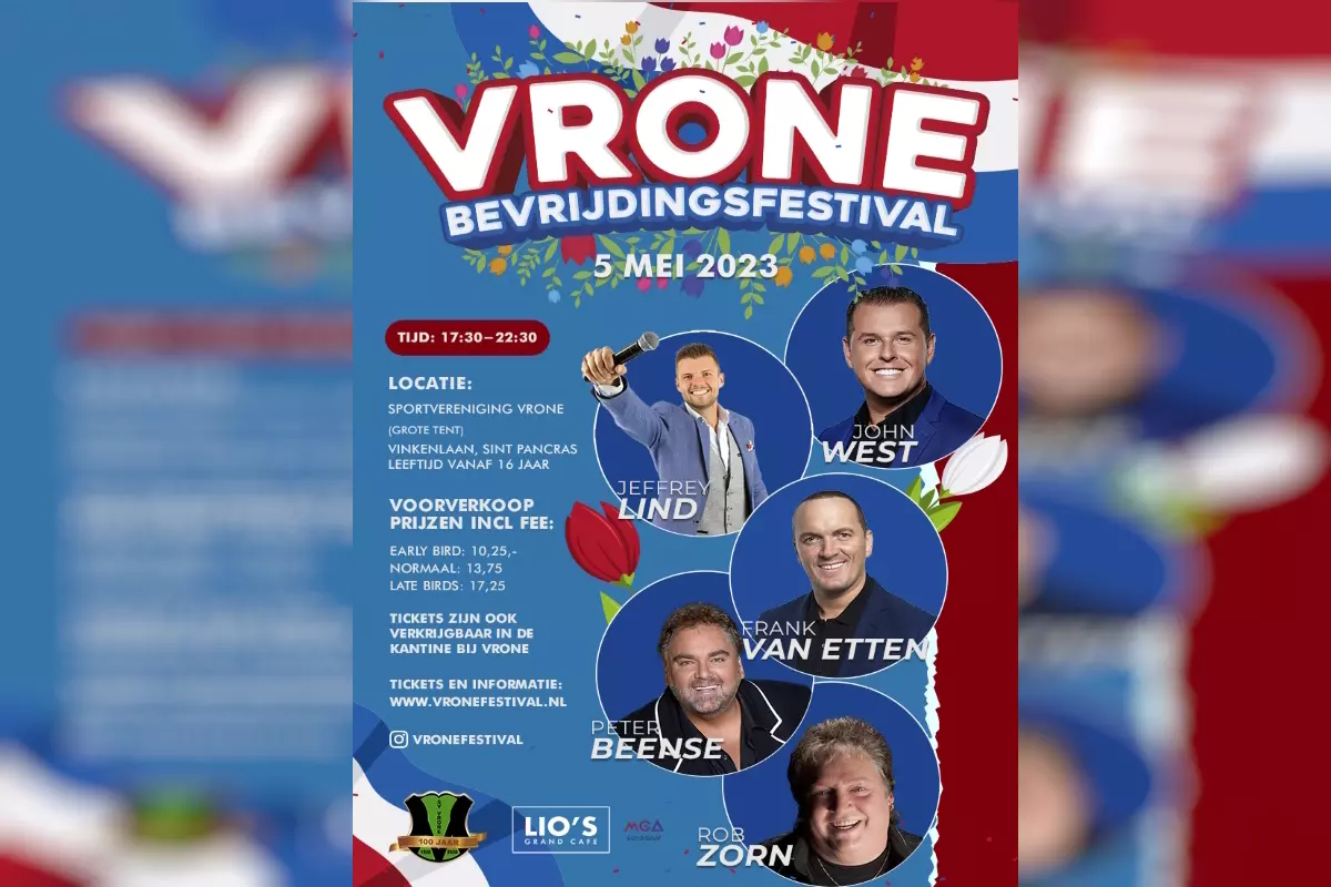 SINT PANCRAS - Op vrijdag 5 mei tijdens bevrijdingsdag zal er een gigantisch gaaf festival plaats vinden. Vrone Bevrijdingsfestival 2023.